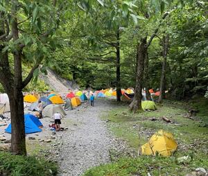 山用のテントは小さいので、寝るとき以外は外で過ごしている人が多い。